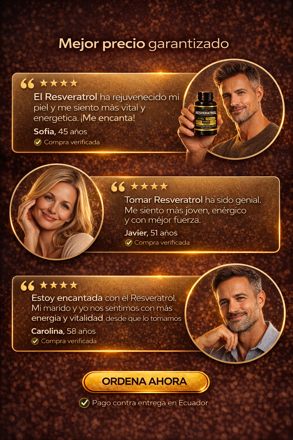 Tengo 42 años y sentía mi piel apagada. No buscaba algo milagroso, sino cuidarme mejor. Después de unas semanas con Resveratrol, noto mi piel más luminosa y mis uñas más fuertes. Se volvió parte de mi rutina diaria.”